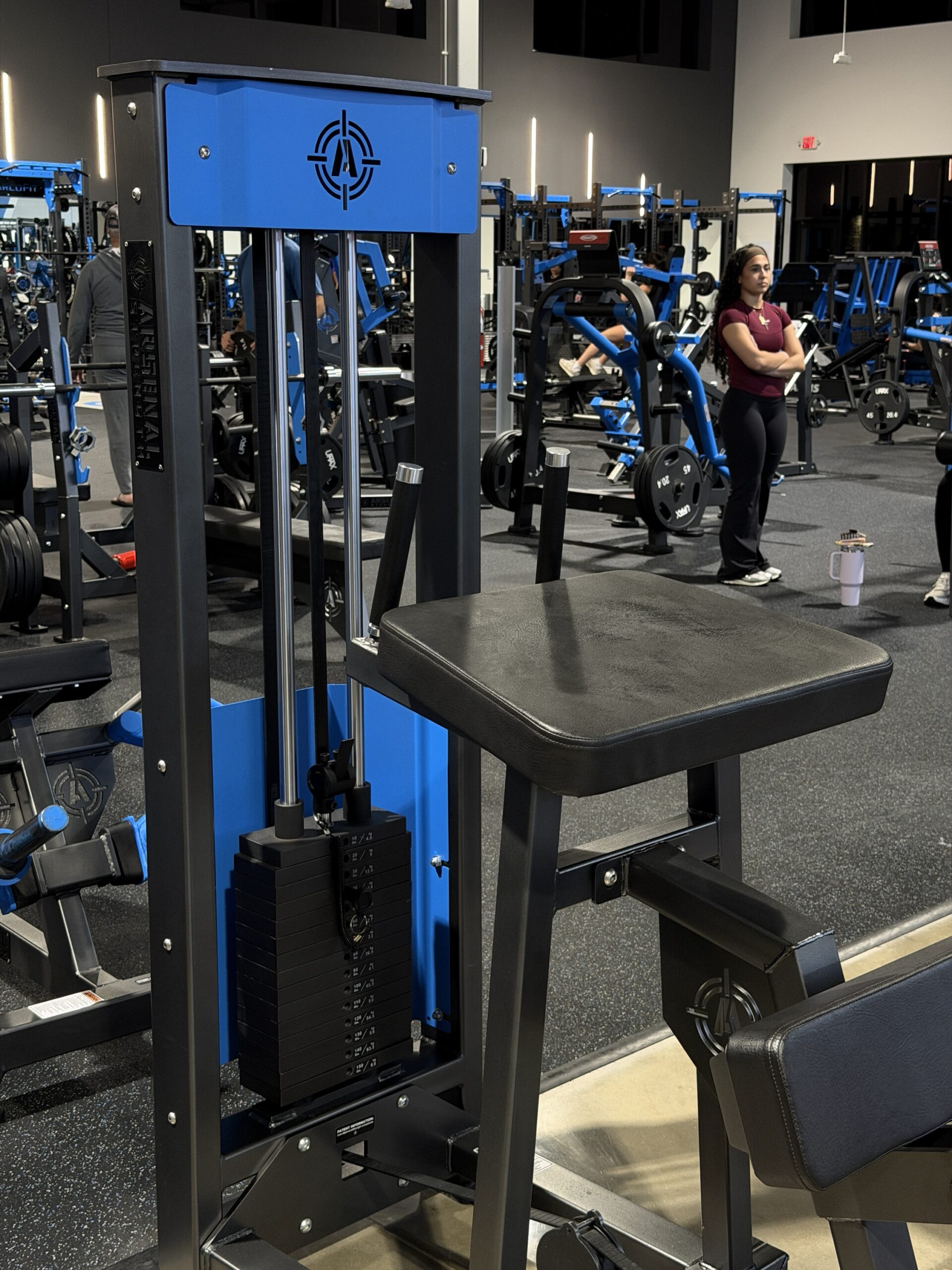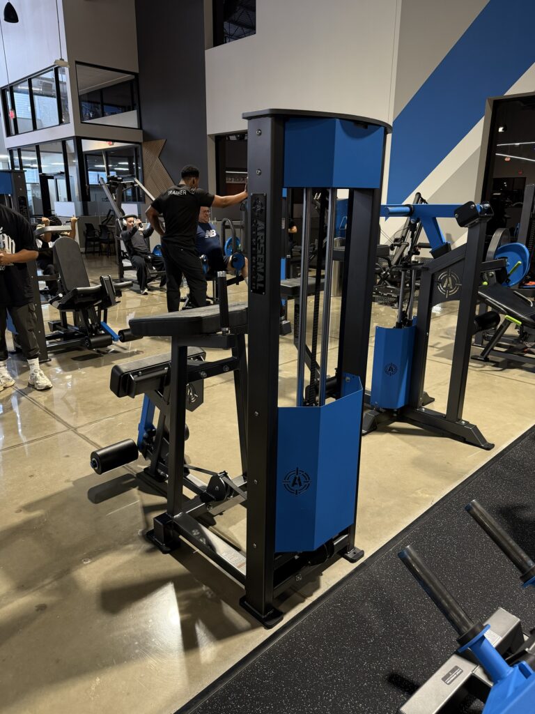 This is an Arsenal Strength M1 Selectorized Standing Leg Curl. It’s in great condition and was kept inside of a climate-controlled gym. The upholstery looks brand new, and the Kevlar belt is in great shape.