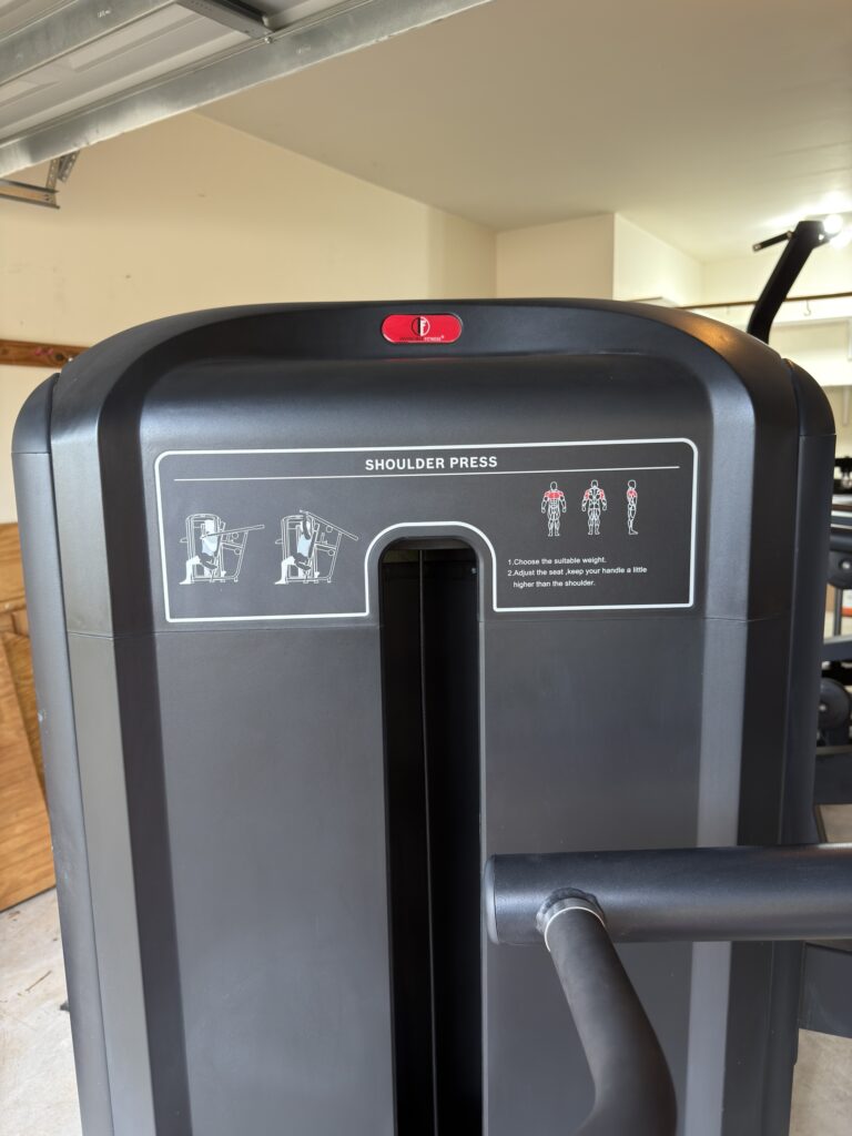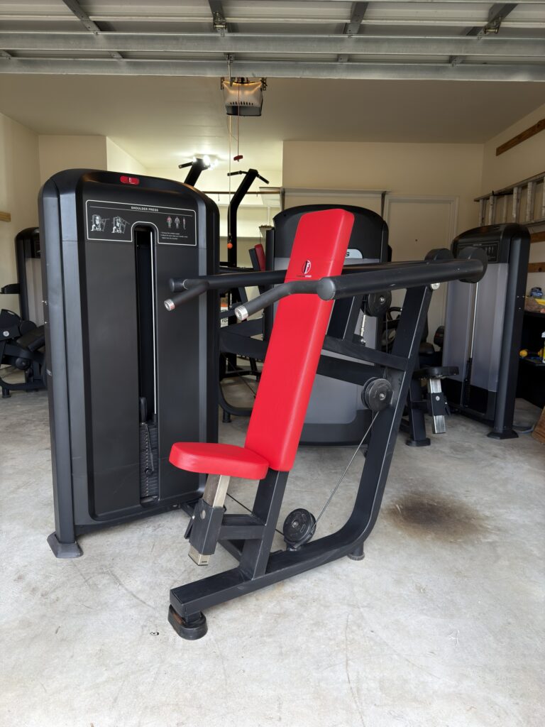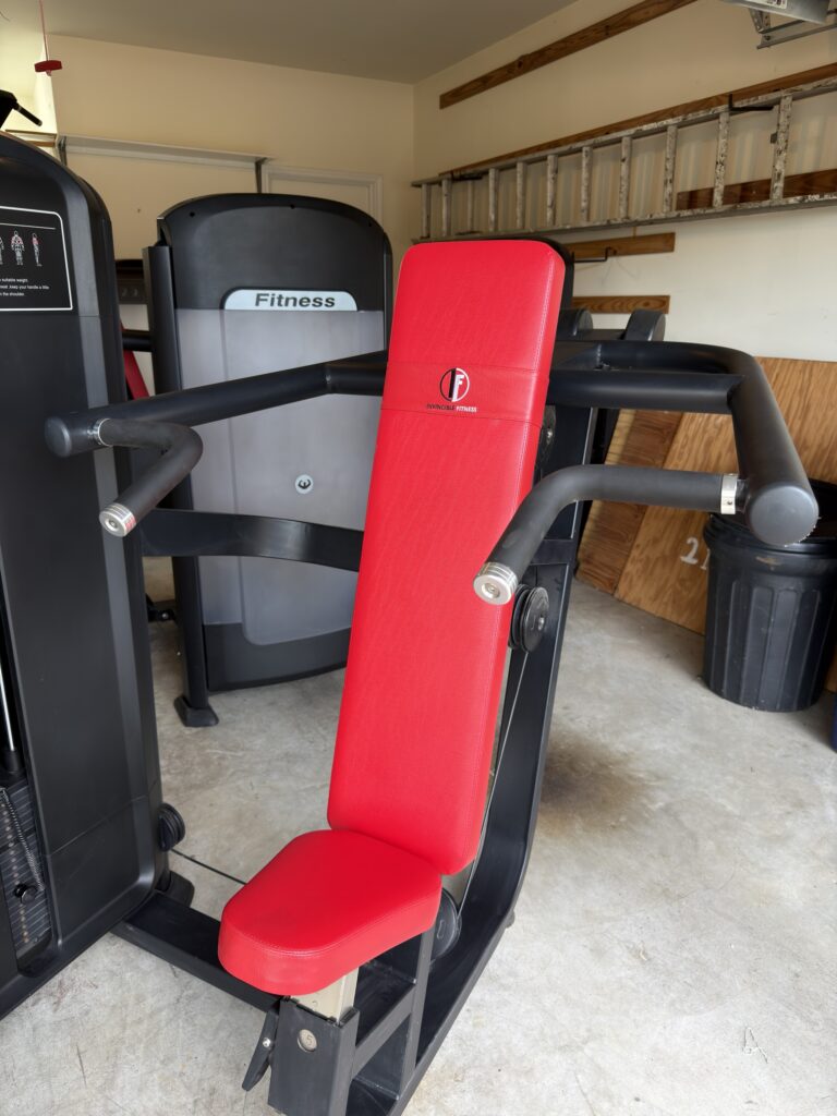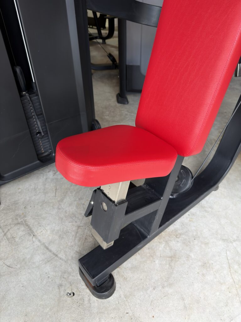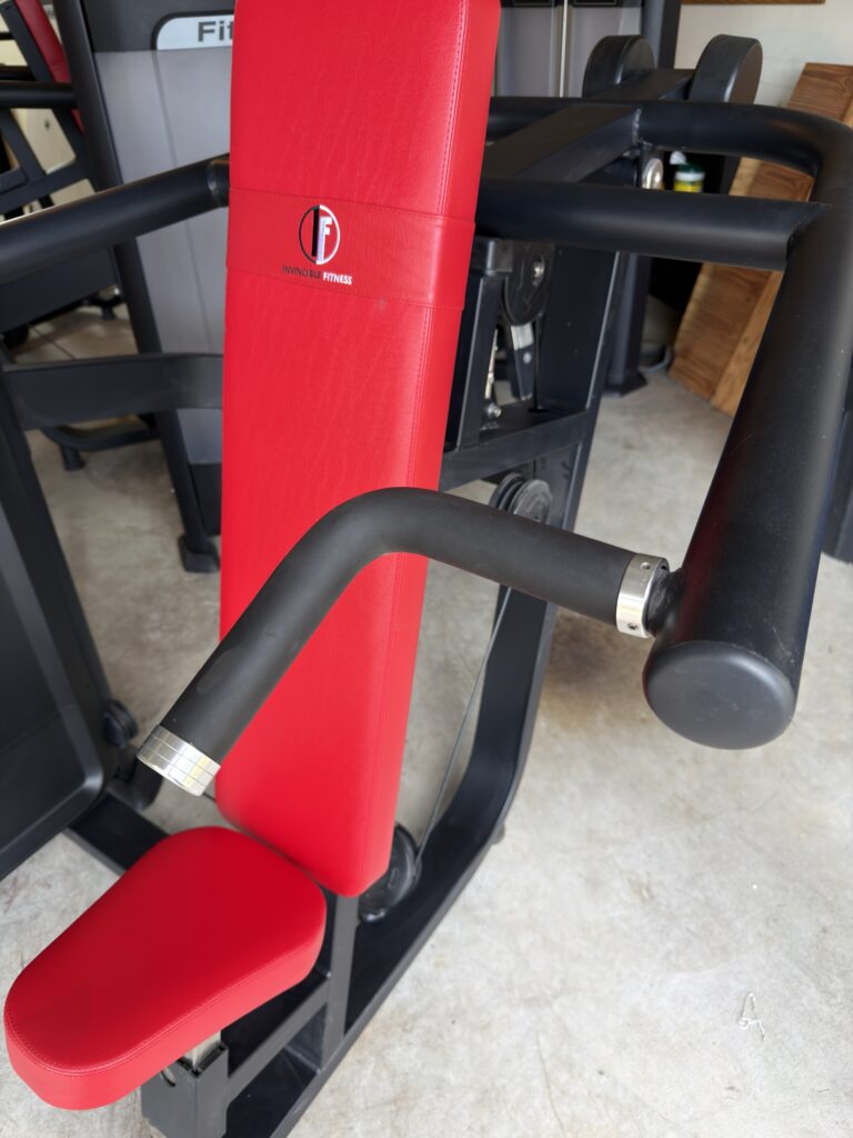 -50%This Invincible Fitness Shoulder Press is in great shape. All black with the red upholstery looks beautiful. The weight stack stickers were added recently!