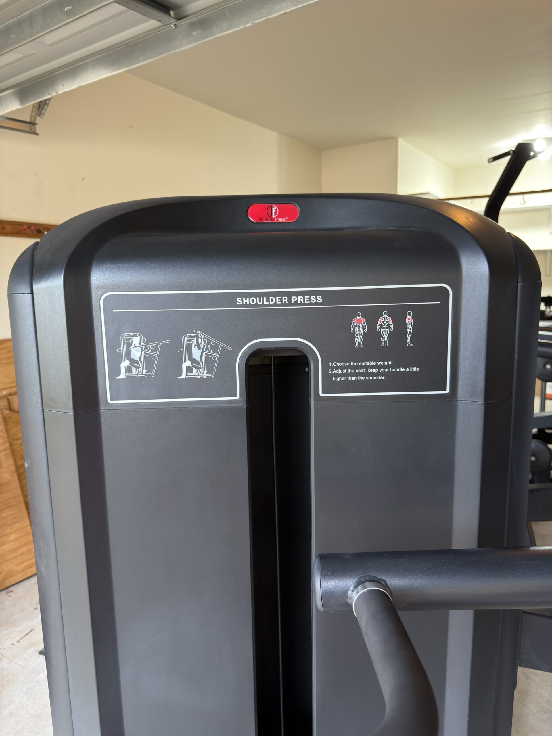 -24%This Invincible Fitness Shoulder Press is in great shape. All black with the red upholstery looks beautiful. The weight stack stickers were added recently!