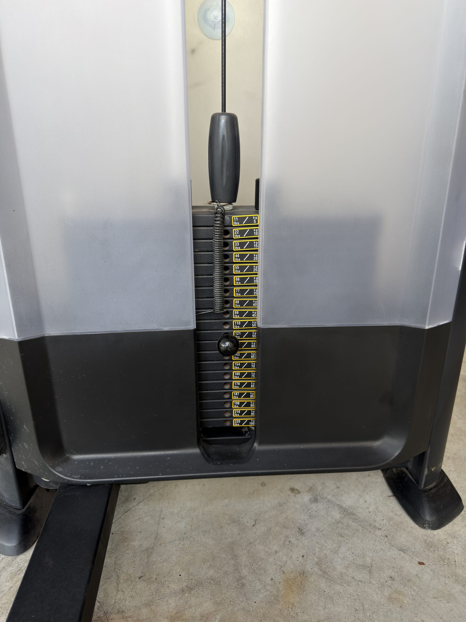 -24%This is the Invincible Fitness Vertical Row. This one feels incredible! Extremely smooth and the foot placement helps keep pressure off your chest when using it. The weight stack stickers were added recently!